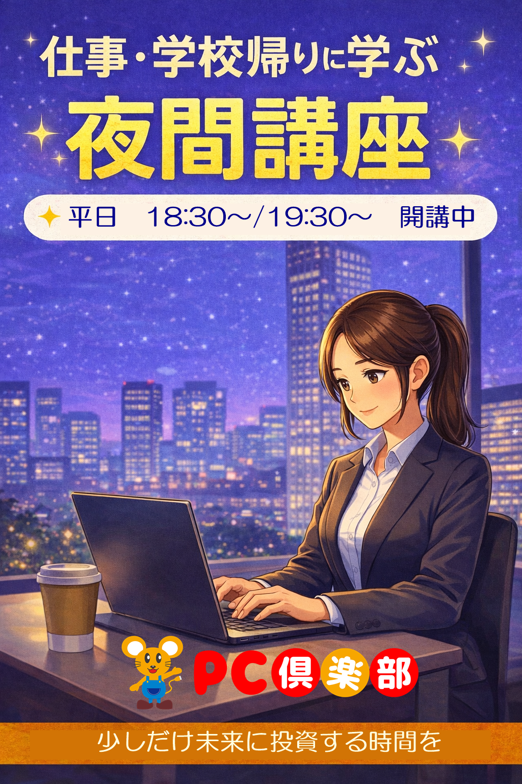 埼玉県本庄市にあるパソコンスクールです。PC倶楽部は「楽しさを伝える」をモットーとしています。パソコンやICT機器を仕事や趣味でご活用出来る様に専門の認定インストラクターが対応させて頂きます。まずは、カウンセリングで目的・受講時間・予算等を伺いあなたに合った学習スタイルをご提案致します。「ご自分に自信をつけましょう」是非、ご連絡をお待ちしております。